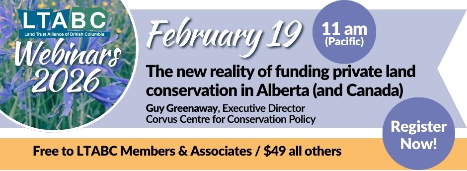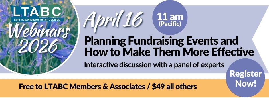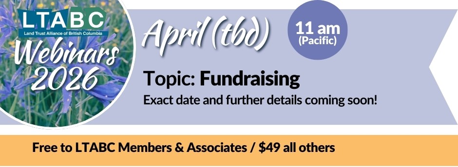 A NOTE ABOUT OUR WEBINARS: We produce these webinars for free for our land trust members. For non-members we charge $49 per webinar (this includes attending the live event and watching the recording). Contact devofficer@ltabc.ca for more information.
