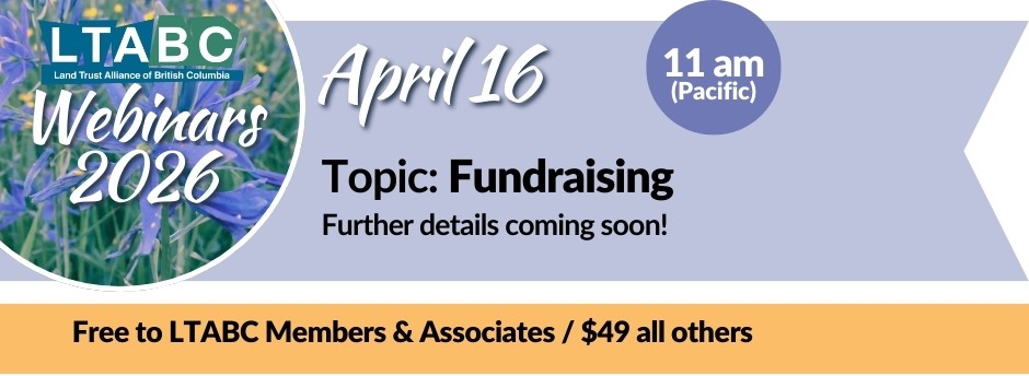A NOTE ABOUT OUR WEBINARS: We produce these webinars for free for our land trust members. For non-members we charge $49 per webinar (this includes attending the live event and watching the recording). Contact devofficer@ltabc.ca for more information.